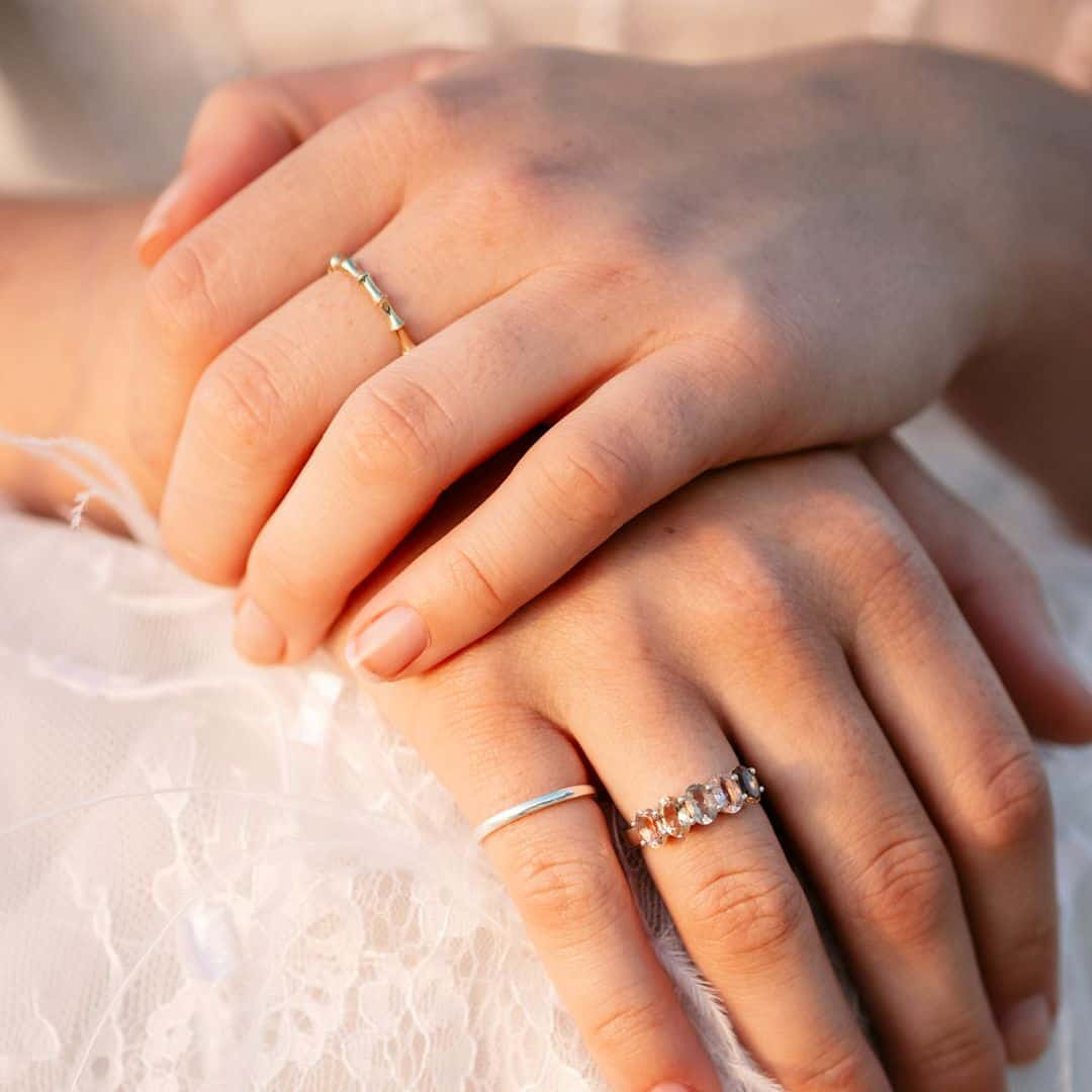 Each of your rings should be stored separately; not in a bunch, because they can scratch each other. Different gemstones have different hardness’s, and when they rub against each other harder stones and metals can scratch softer stones.