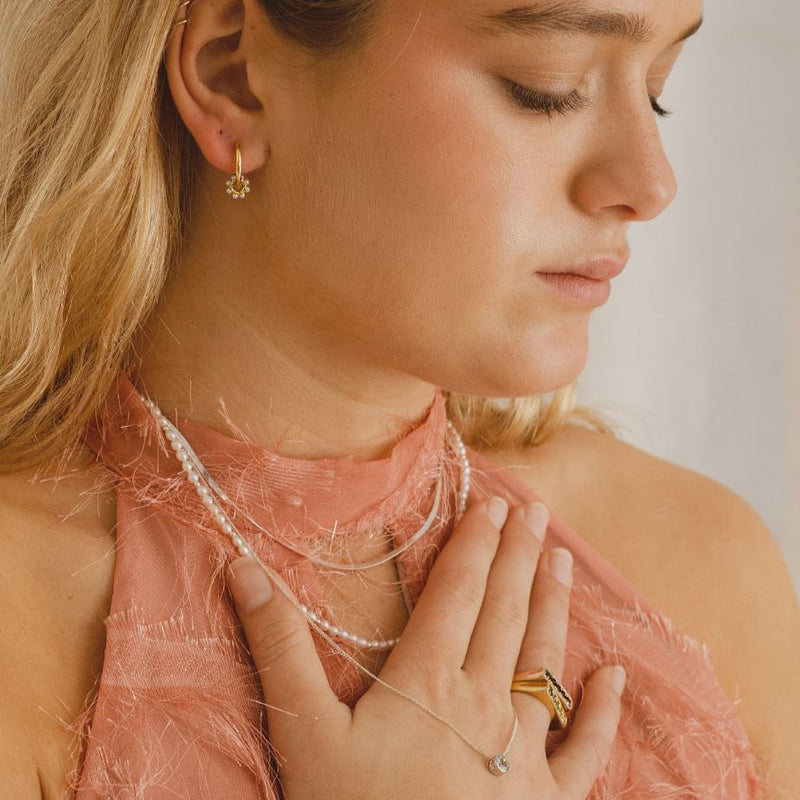Dripping in pearls, this one’s for all our pearl lovers who adore a little playful pop of colour. Classic, timeless, and full of ocean-born magic.