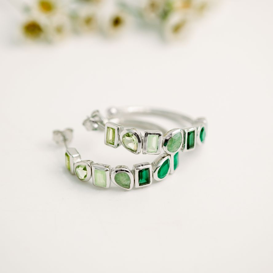These Large Ombre™ Hoops bring a splash of fun with seven natural gemstones arranged in a stunning ombre gradient. Measuring 26mm in inner diameter, they offer the perfect size to brighten up any outfit. Playful yet elegant, these hoops add a colorful twist that’s sure to turn heads wherever you go!