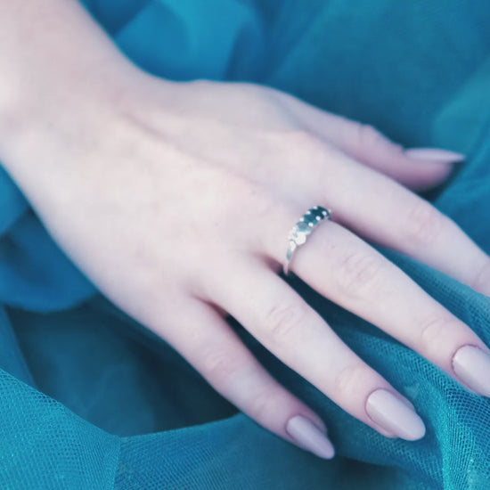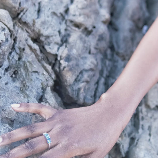 Dive into color with the Original Five Ombré™ Ring! Featuring five handpicked oval gemstones set in Sterling Silver, each ring is uniquely yours with its own size and color variations. Whether you love the deep blues of sapphire or the soft glow of opal, this playful ring adds a splash of elegance to any look—wear it solo or stack it up for extra fun. Celebrate your unique style with a ring as special as you are!
