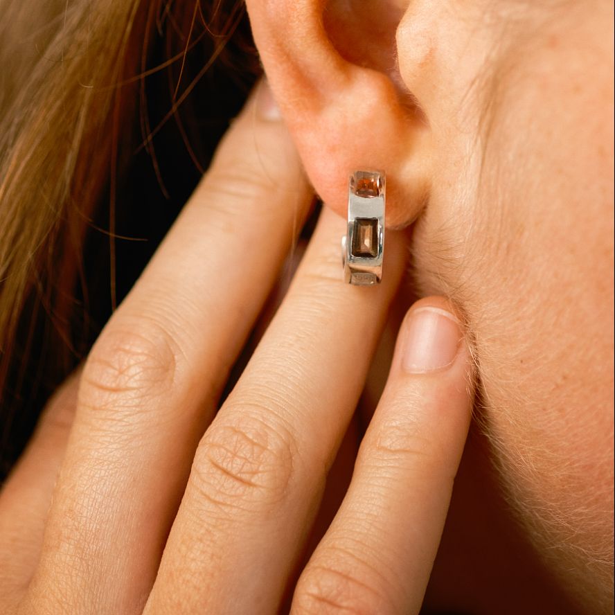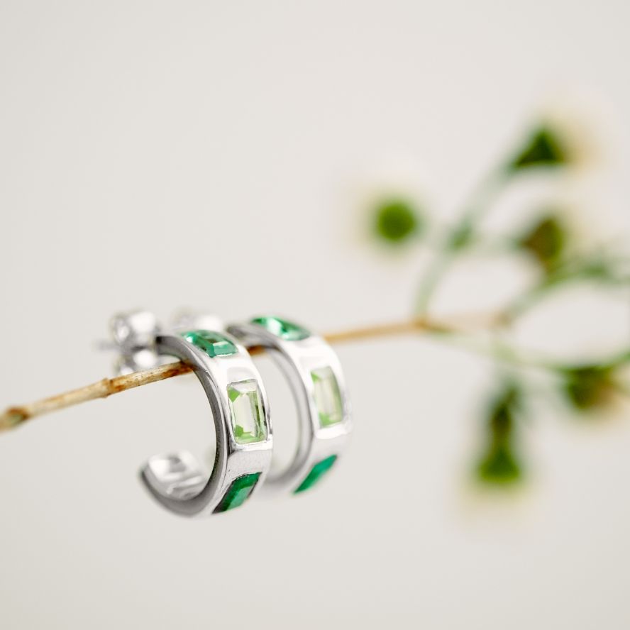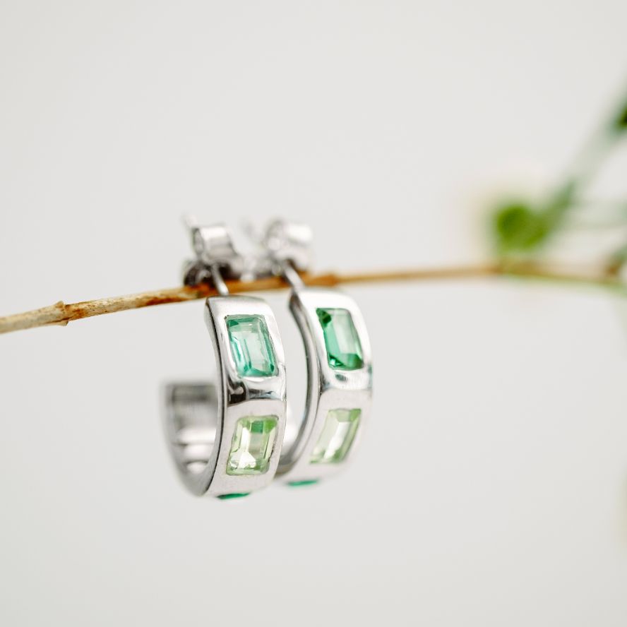 This Small Ombre™ Hoop brings a fun splash of color to your jewelry collection. Measuring 11mm in inner diameter, it features three dazzling 5x3 emerald cut gemstones in an ombre layout that create a beautiful gradient effect. Perfectly petite yet eye-catching, this hoop adds a playful touch to any look—whether you're dressing up or keeping it casual. Add a subtle pop and let your style shine with this charming, colorful accessory!